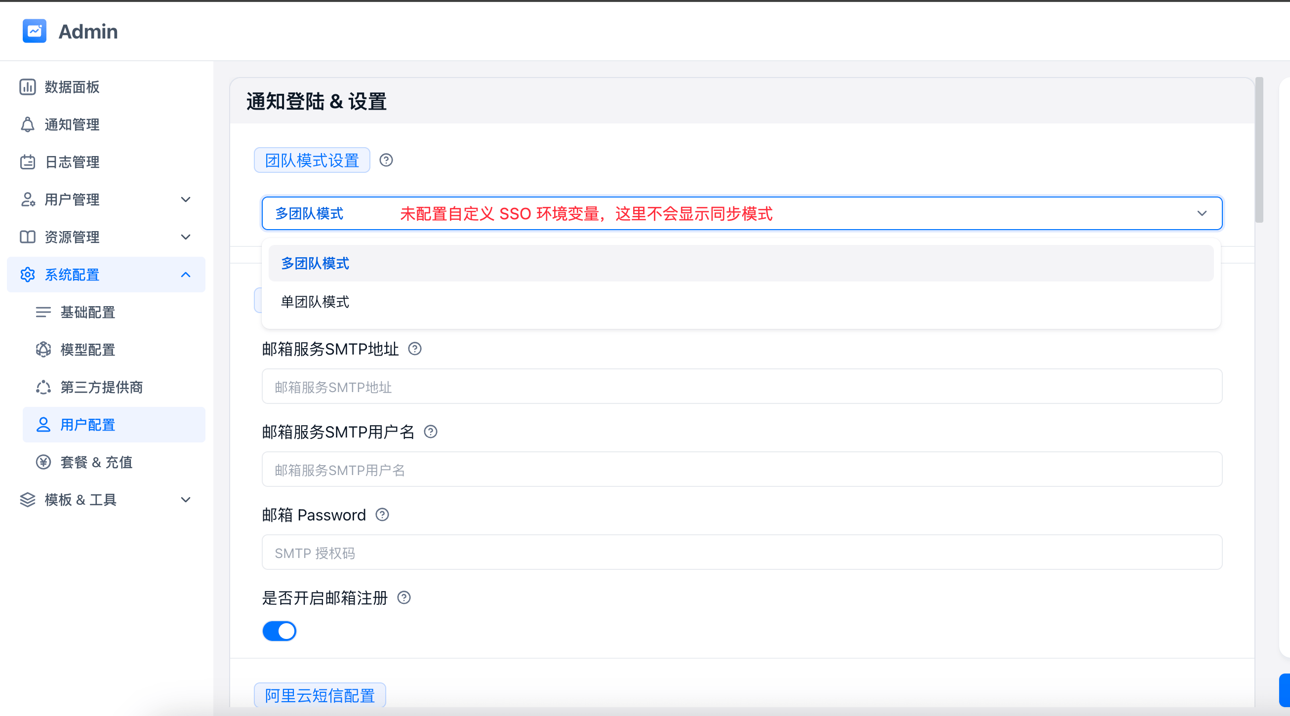| 团队模式 | 短信/邮箱 注册 | 管理员直接添加 | SSO 注册 | |||