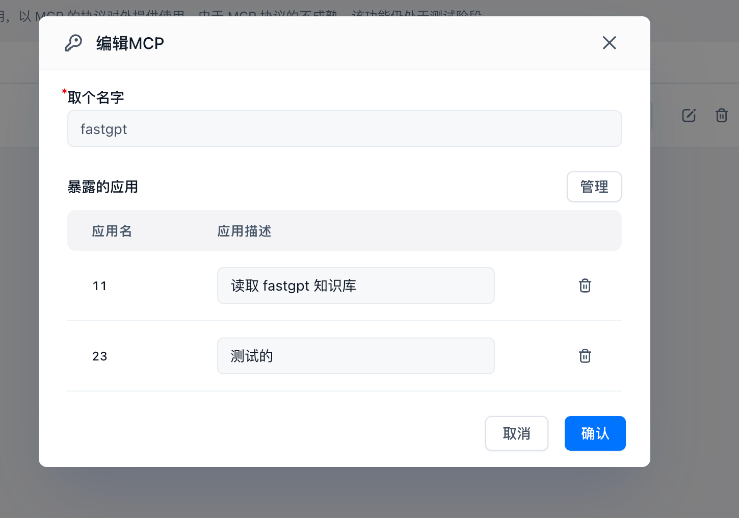 FastGPT MCP Server 功能允许你选择多个在 FastGPT 上构建好的应用,以 MCP 协议对外提供调用 FastGPT 应用的能力。