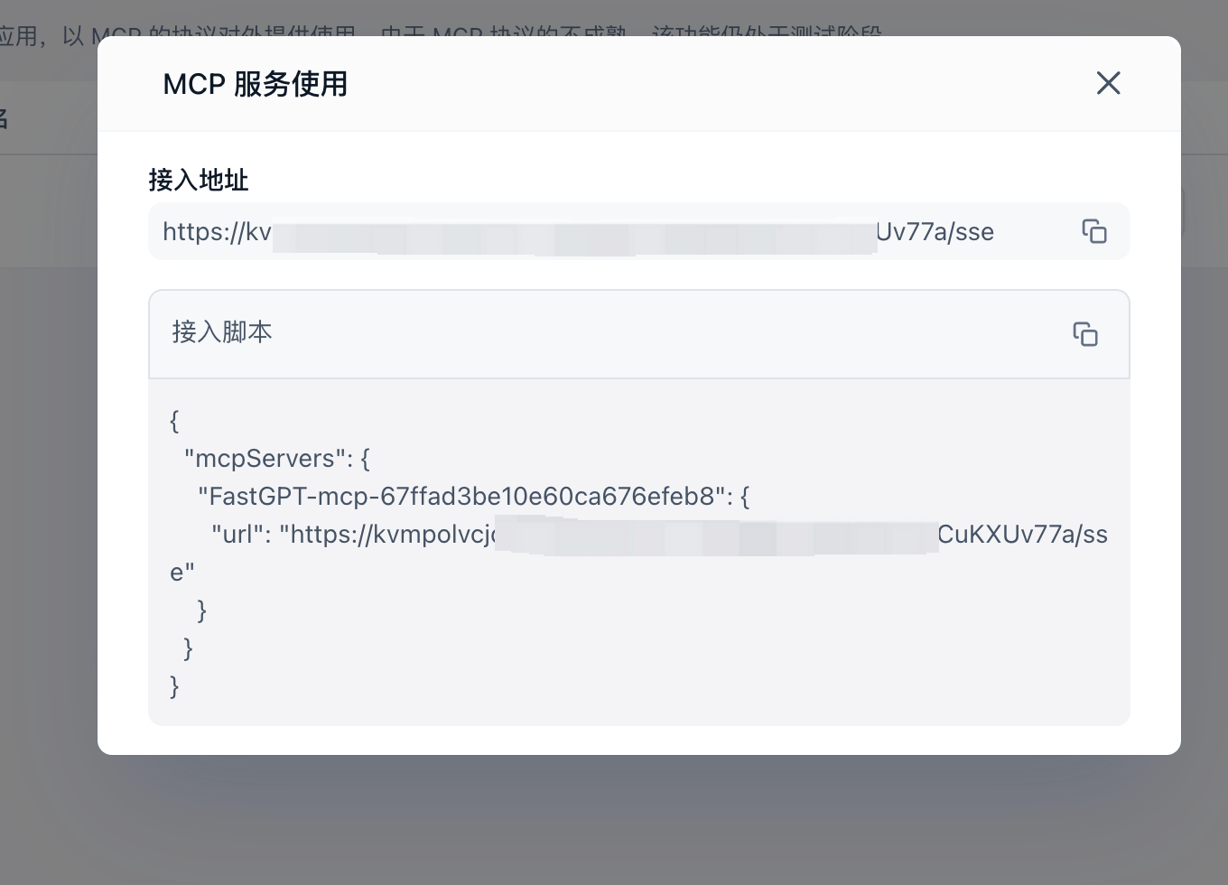 目前 FastGPT 提供的 MCP server 为 SSE 通信协议,未来将会替换成 HTTP streamable。