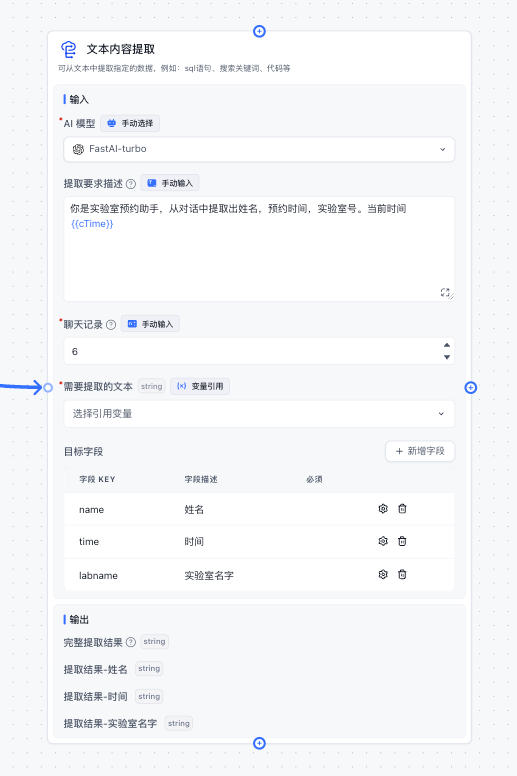 - 必须:是否强制模型提取该字段,可能提取出来是空字符串。