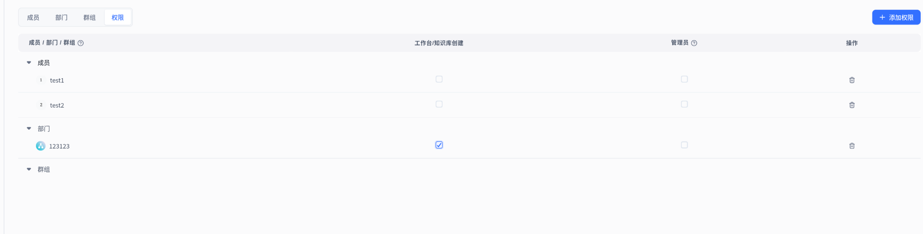 部门与群组权限:采用权限并集原则,优先级低于成员权限
