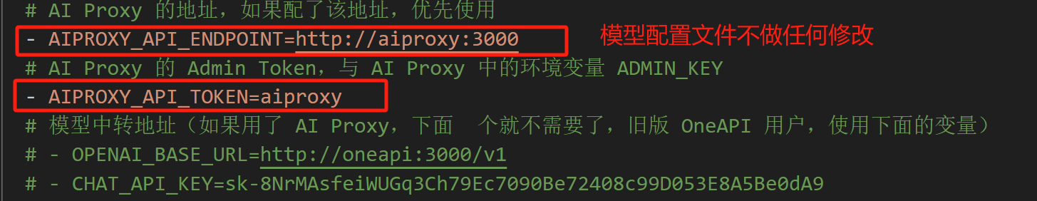 如果你采用的是 FastGPT 中的默认配置文件部署这里,即默认采用 AI Proxy 进行启动。
