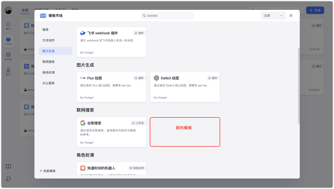 完成上述操作后,可以打包 fastgpt-plugin 镜像使用 目前模版不支持热更新机制,所有模版都会打包在镜像内。